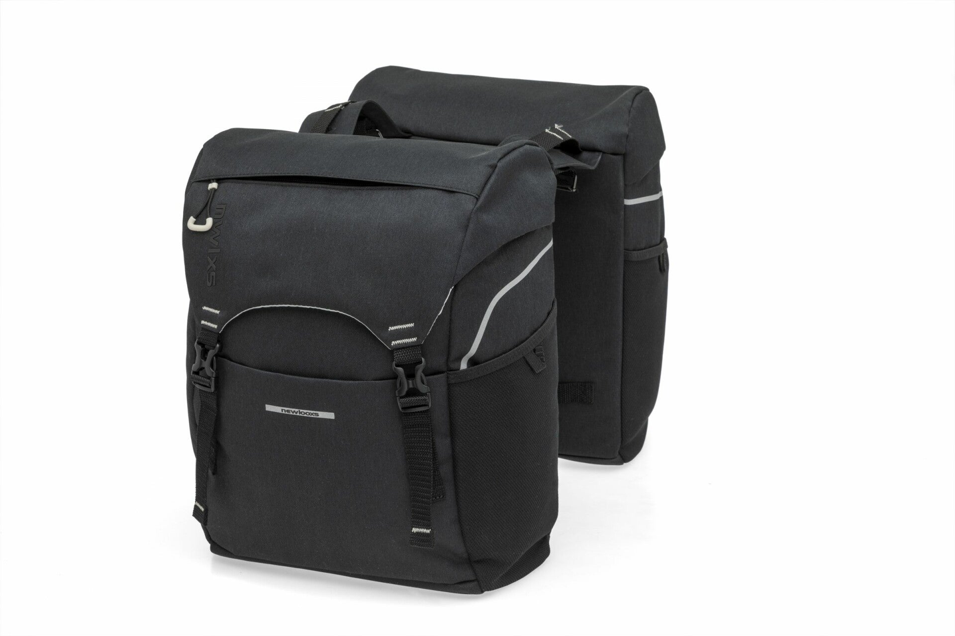 De Sports Double is een sportieve dubbele fietstas, gemaakt van waterafstotend polyester. Daarnaast heeft de tas een regenhoes die jouw spullen beschermd tegen een flinke regenbui! De tas heeft 2 ruime hoofdvakken maar ook nog extra kleinere vakken zodat je al jouw spullen handig meeneemt!
